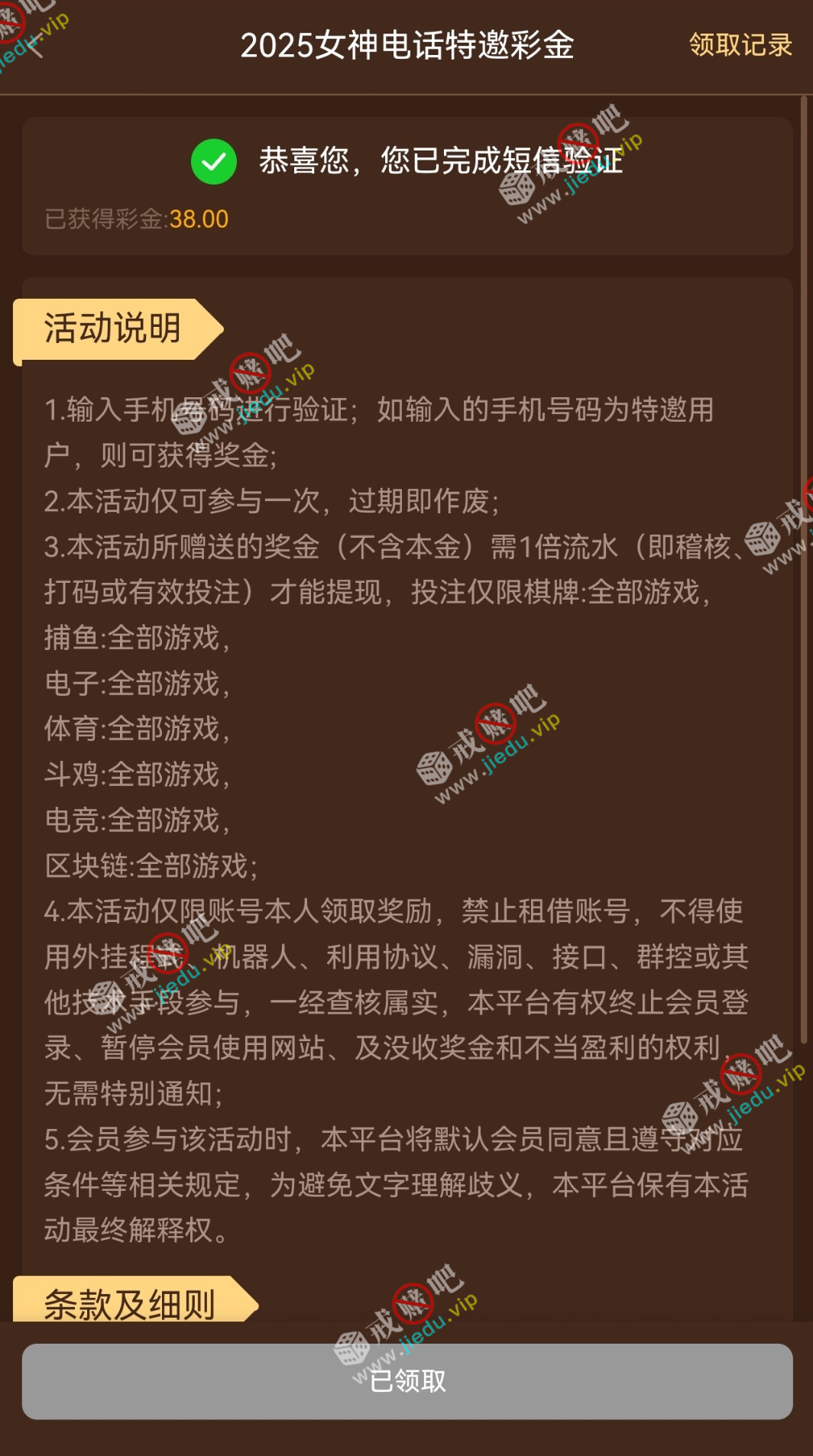 碰瓷吧验证直接38彩金,电话女神特邀,不需要特邀了,能收到验证码的手机号就可以了。
