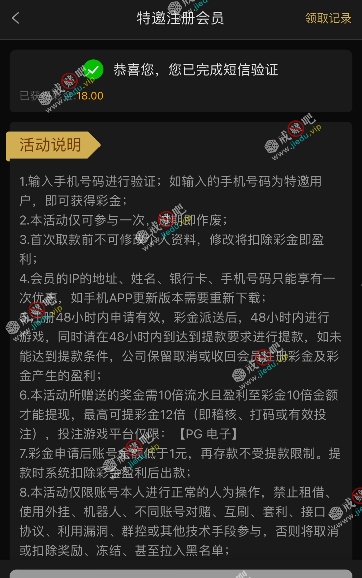 到账情况: 白嫖即可(勿充值)