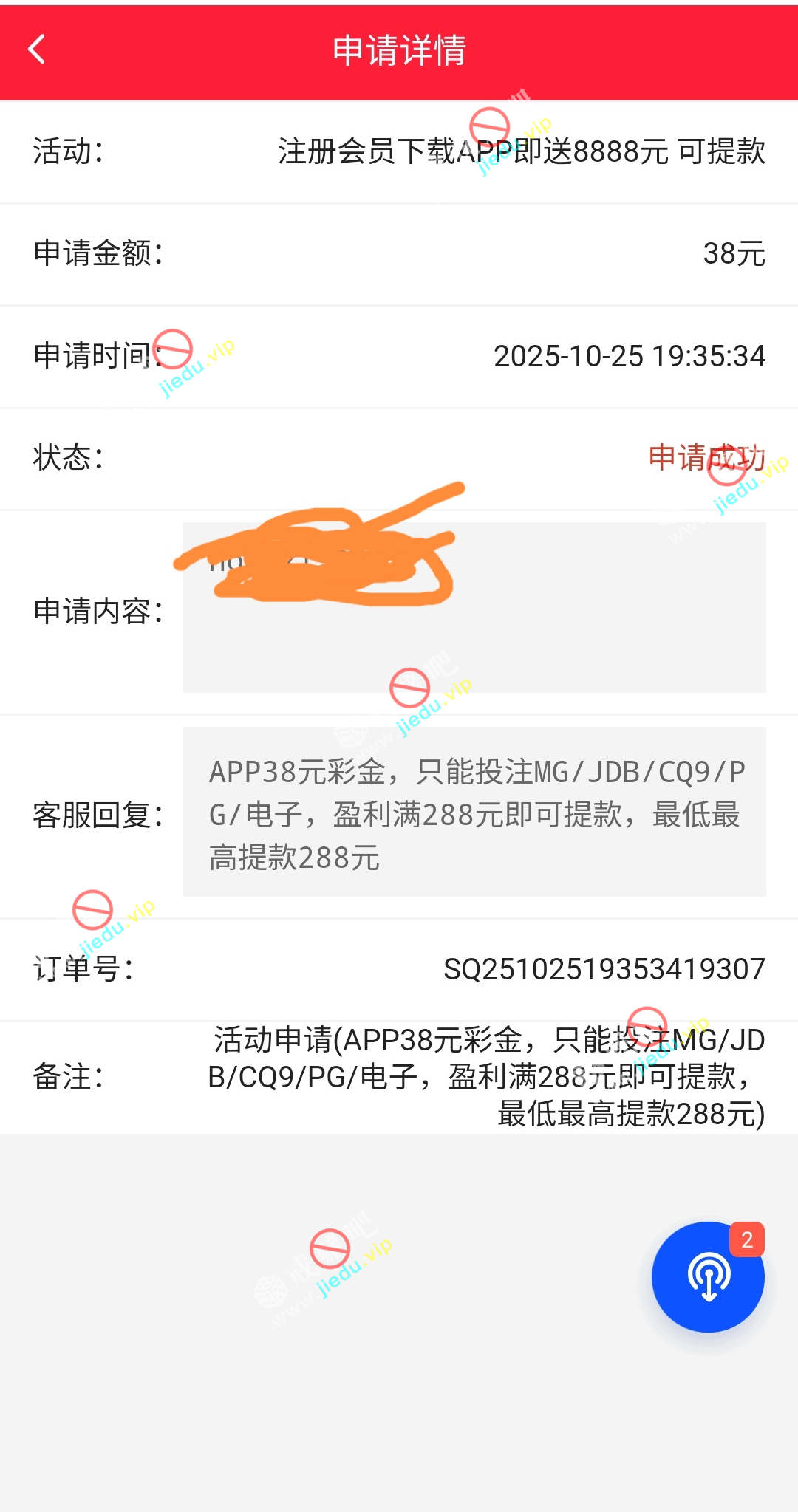 没有申请过 app 彩金的,我第一次申请就失败了,可以自助再次申请,我拿到了,挂壁仔们去碰碰。