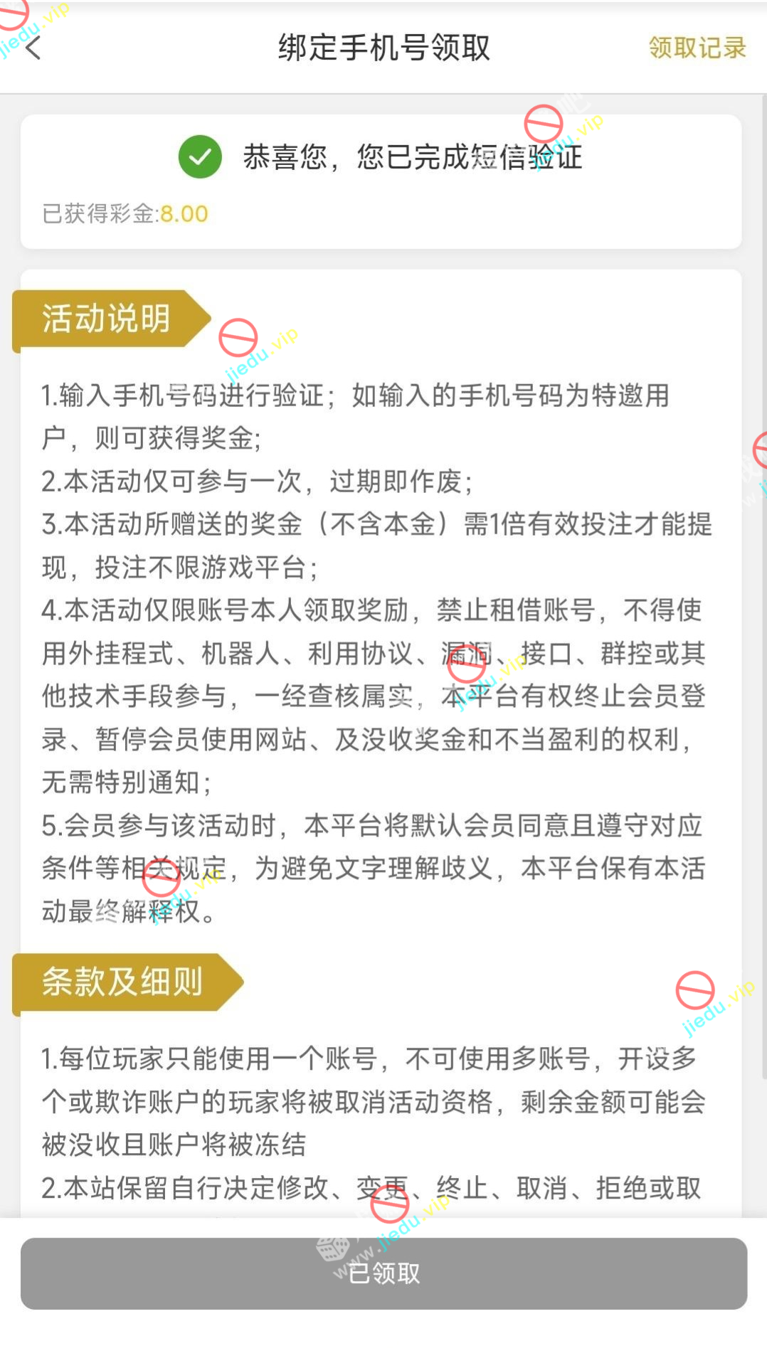 到账情况: 白嫖即可(勿充值)
