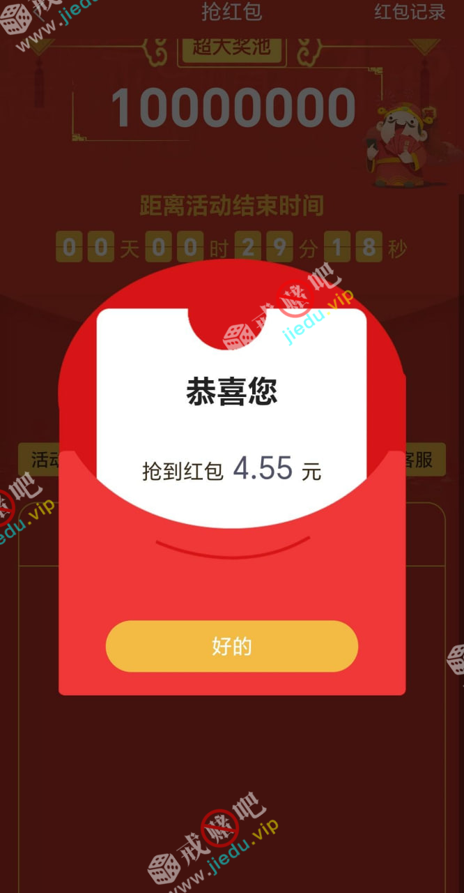 上午8-10-12点三波神秘红包,我已到了 4.55。