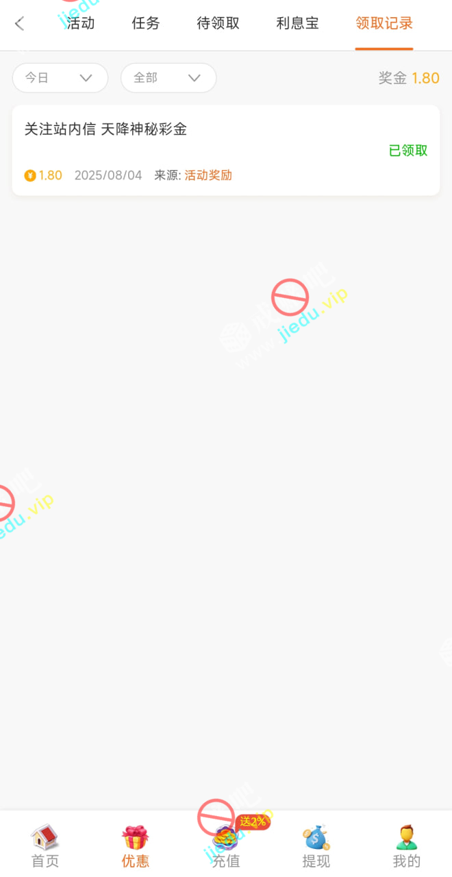 到账情况: 白嫖即可(勿充值)