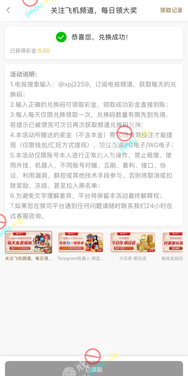 到账情况: 白嫖即可(勿充值)