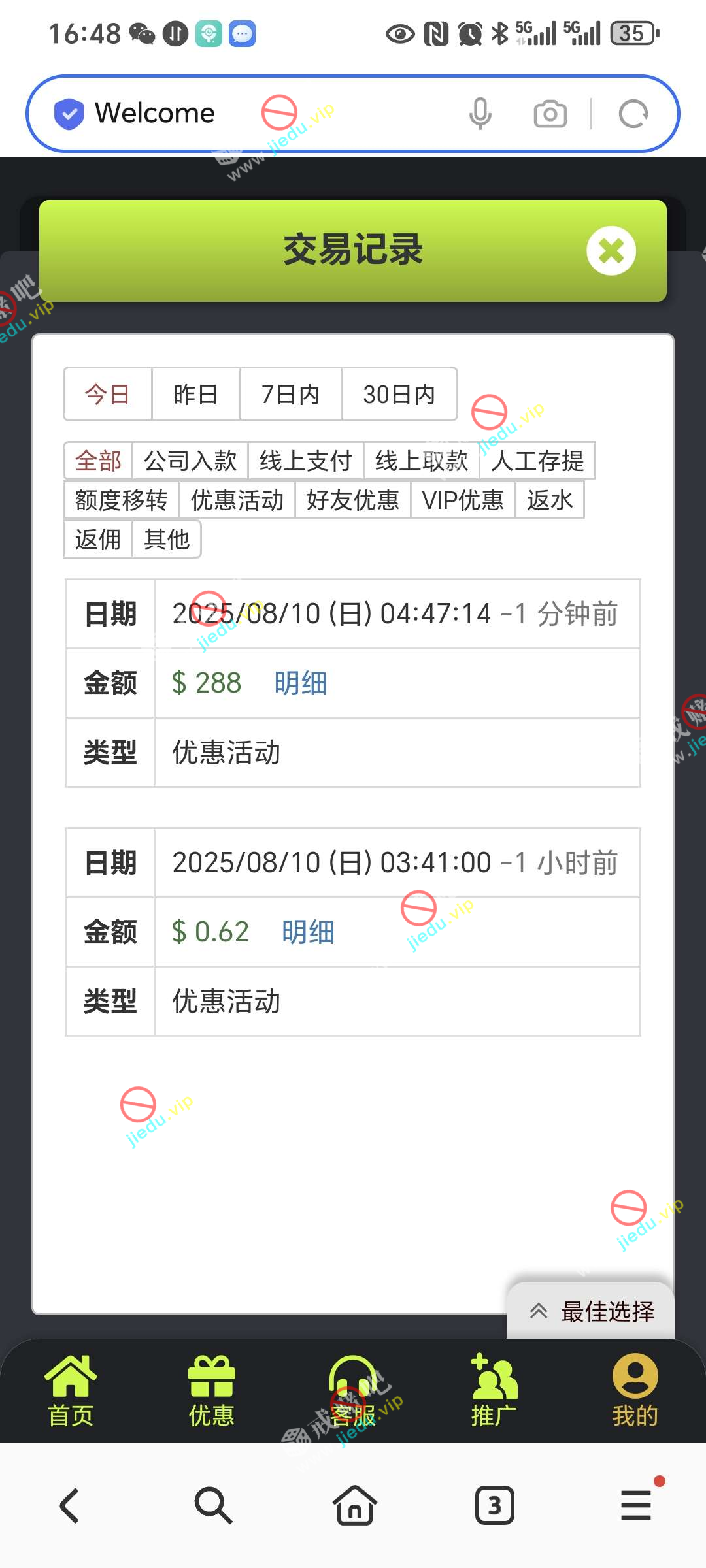 到账情况: 白嫖即可(勿充值)