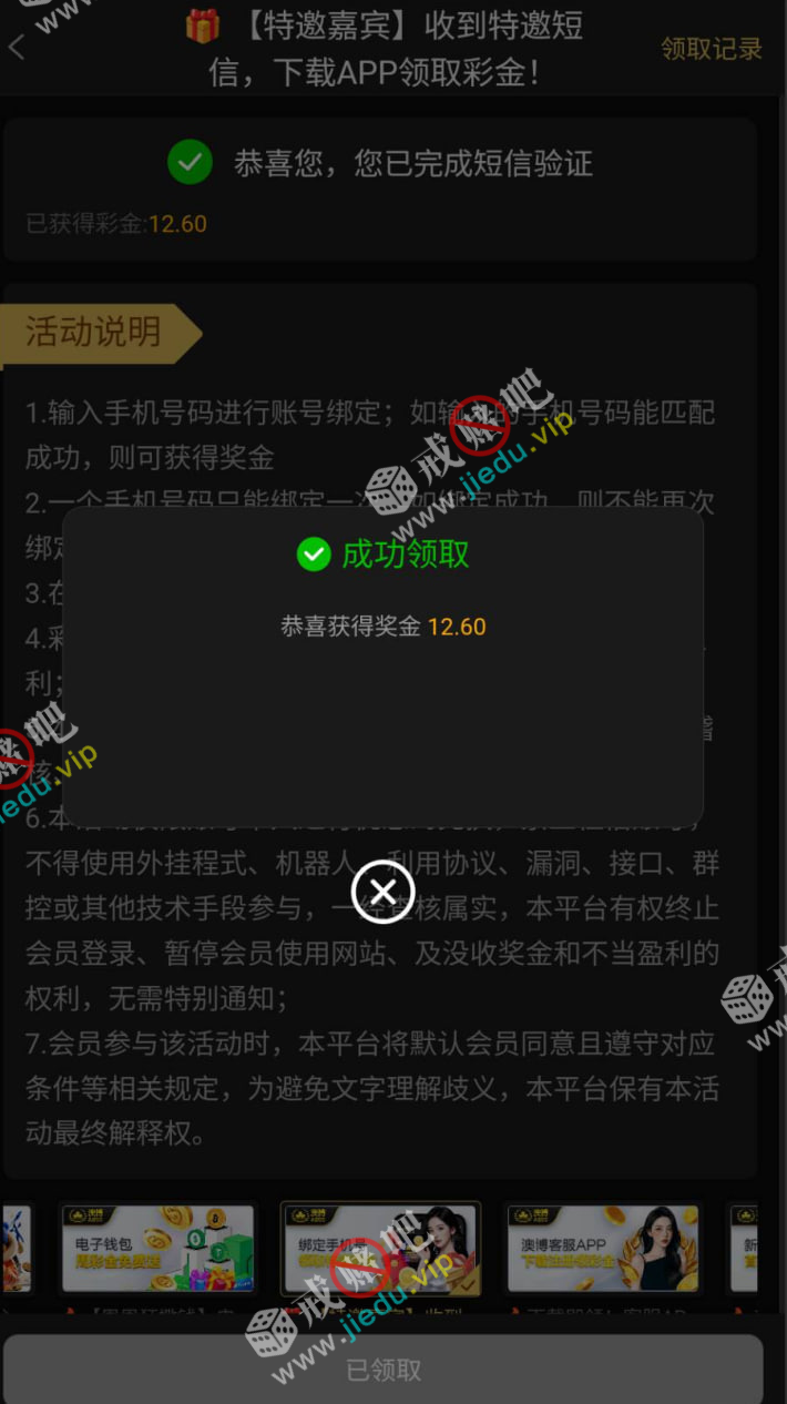 短信特邀彩金。大哥们可以去试试