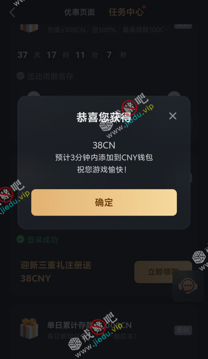 到账情况: 白嫖即可(勿充值)