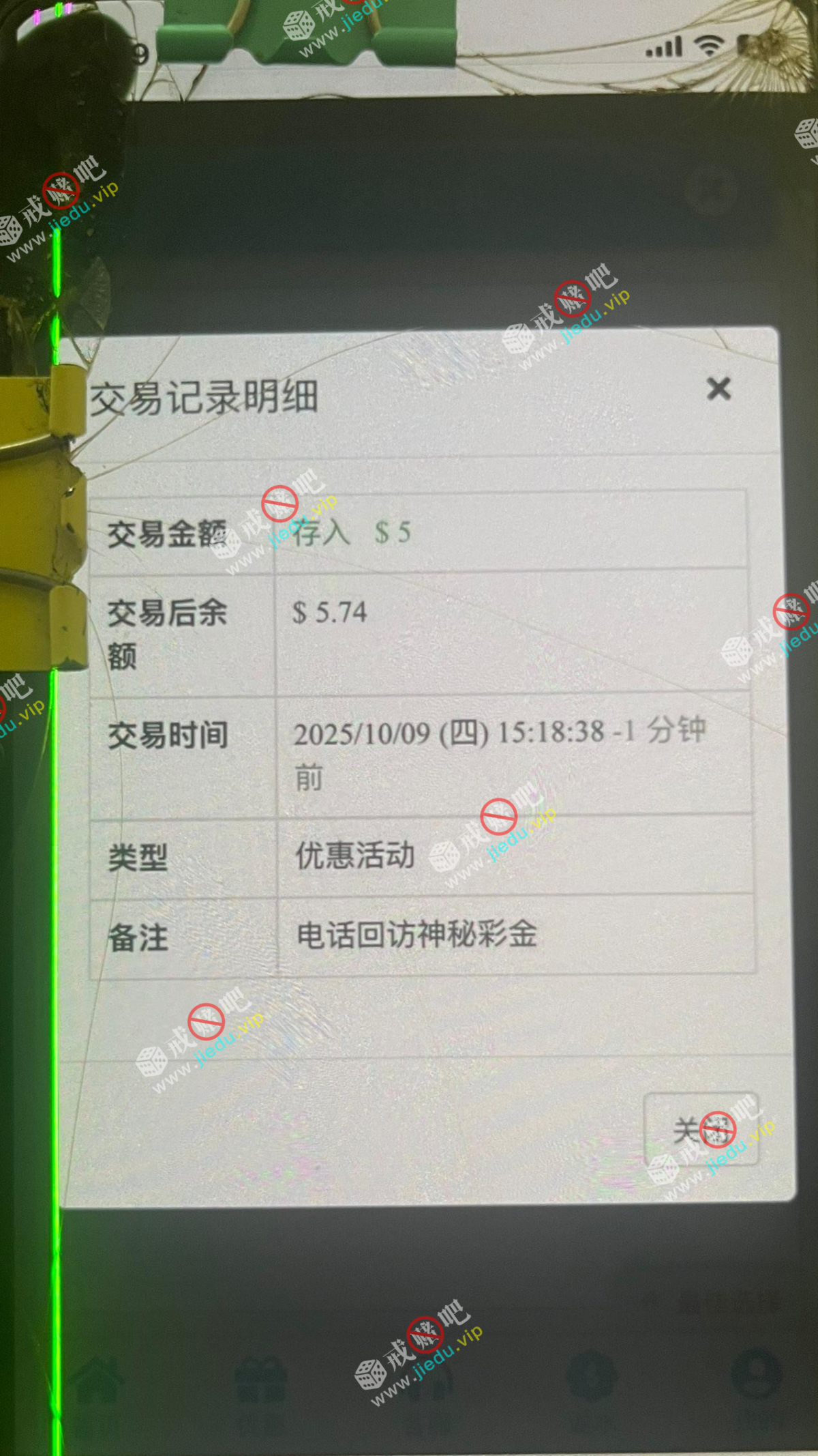 接到电话送了神秘彩金。