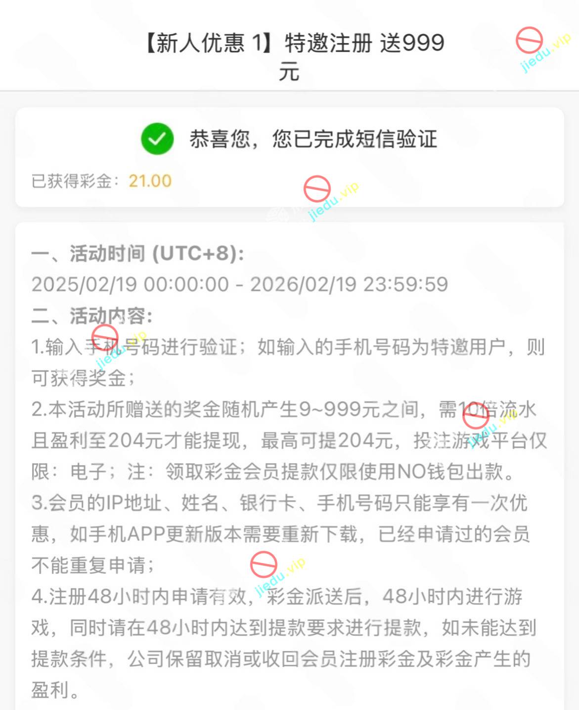 特邀碰瓷:收到短信上号注册自助验证手机号领取到了21,有短信的老哥们可以去试试